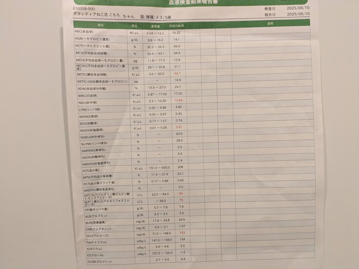 また血液検査もしていただいて特に目立つ問題はなかったと安心しました。