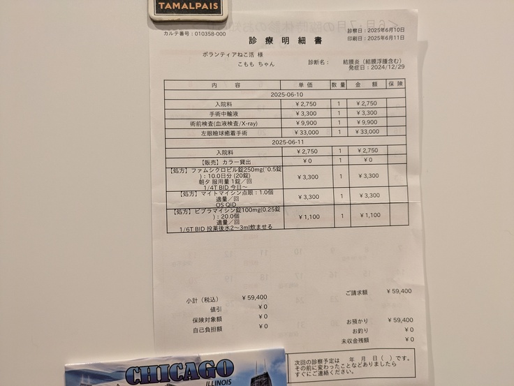 とはいえ前回よりも良くなることを期待して今後、投薬、目薬、通院をしていきたいとおもいます。