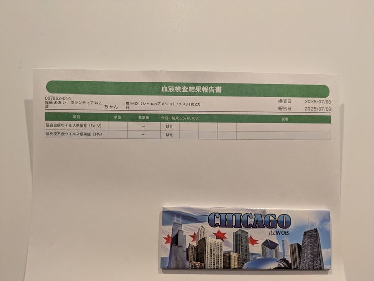 [あおいちゃん]は本日、ウイルス検査をしてマイナスが確認できました。