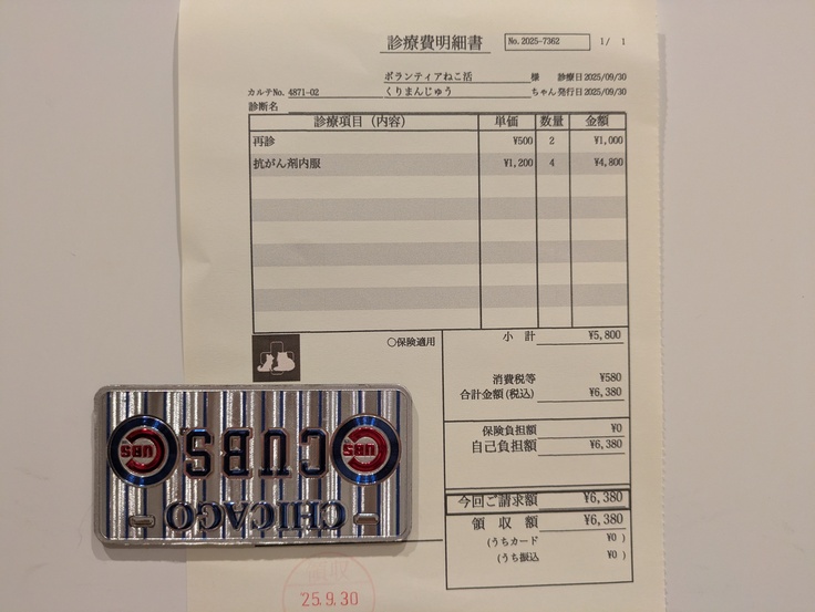 そして今まではステロイドと抗生剤で腫瘍を抑えていましたが効果がないのでが以前[ちゃたん君]がお世話になった病院で1ヶ月間だけ処方された抗がん剤を再度服用してみようということになりました。