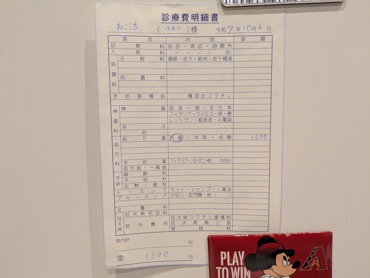 とにかく逃げるので捕まえることも難しく、また投薬も何かに混ぜても敏感に察知してしまうため魚風味の抗生剤を処方してもらいました。