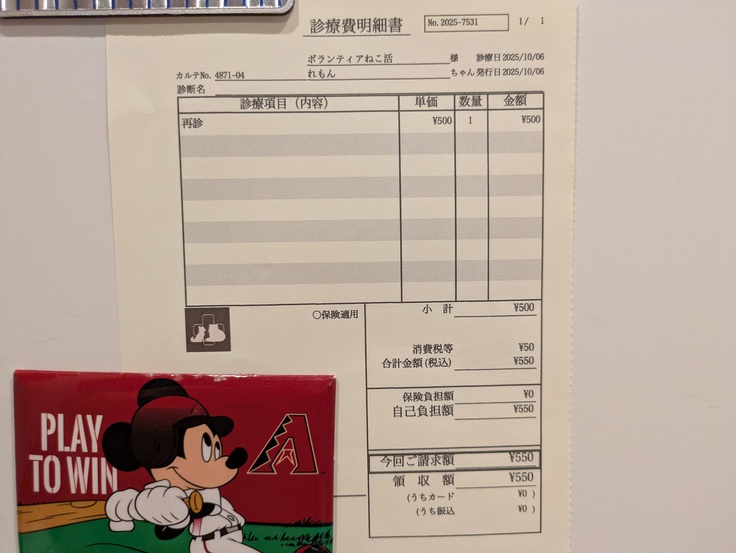 同日警察署に行き、拾得物の委託保管の手続きをしました。またマイクロチップ確認しましたが読み込みはできず確実な飼い主不明猫となりました。