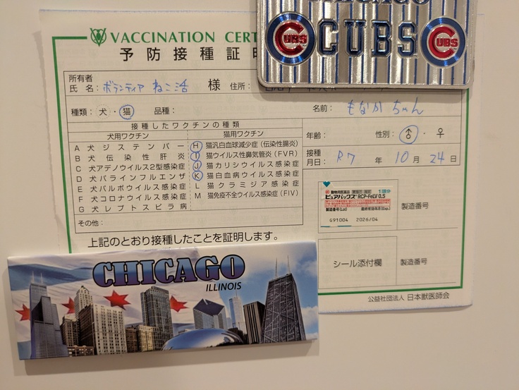 朝、[くりまんじゅう君]をお願いしたあと一旦戻り、[もなか君]の予防接種と皮膚の状態をみていただきにいきました。