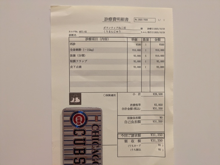 比較的しっかりとした歯なのと丈夫な[くりまんじゅう君]の抜歯は大変らしく2回、片側ずつの抜歯を分けてしていただいてます。