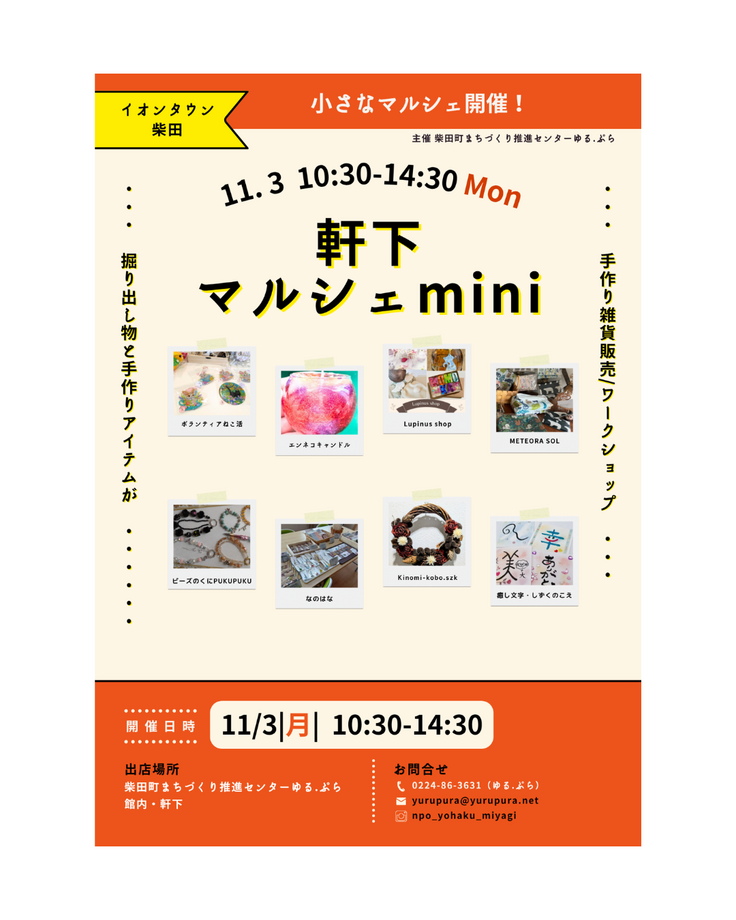 治療以外では来週祝日に柴田町ゆるぷらでマルシェがありますので参加します。