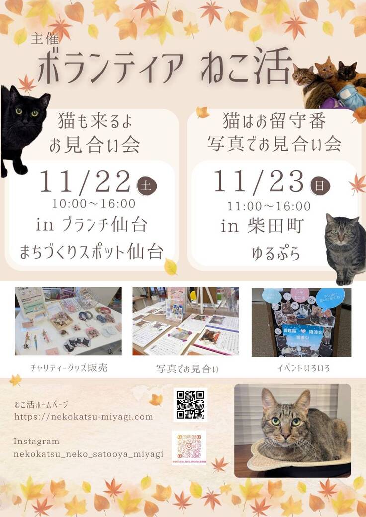 22日(土)は仙台市泉区長命ケ丘のブランチ仙台まちづくりスポット仙台にて譲渡会です。