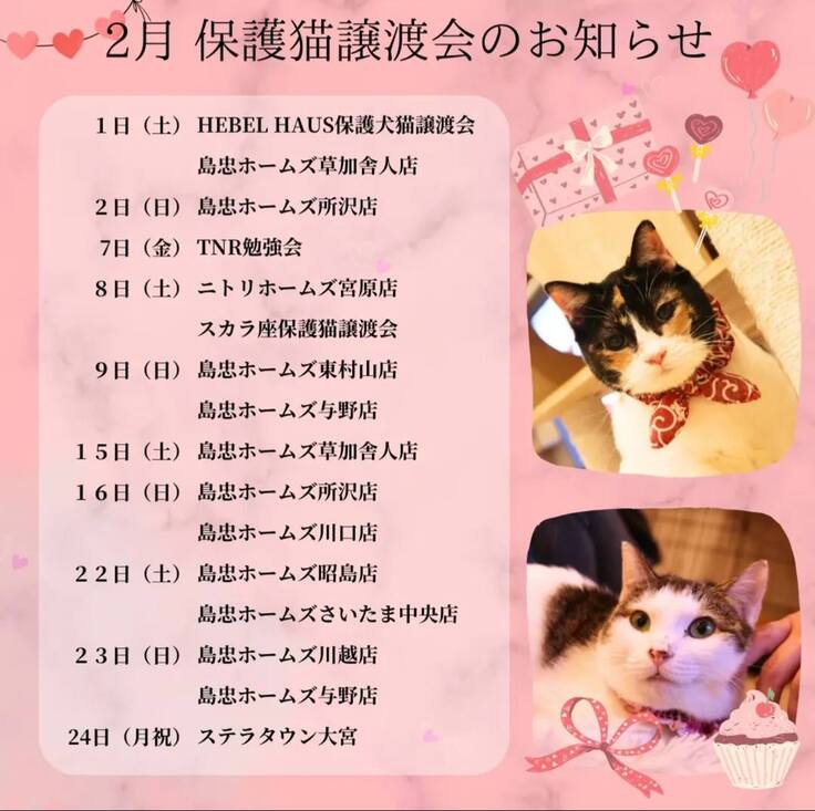 2月は合計15回の保護猫譲渡会を開催いたします。
