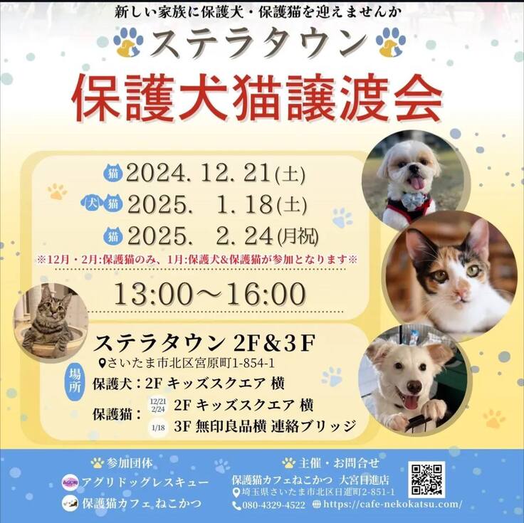 ステラタウンさまでの譲渡会も月一開催になりました。