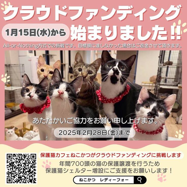 サポーター募集中/保護猫カフェ閉店で残った猫の飼育への援助を!