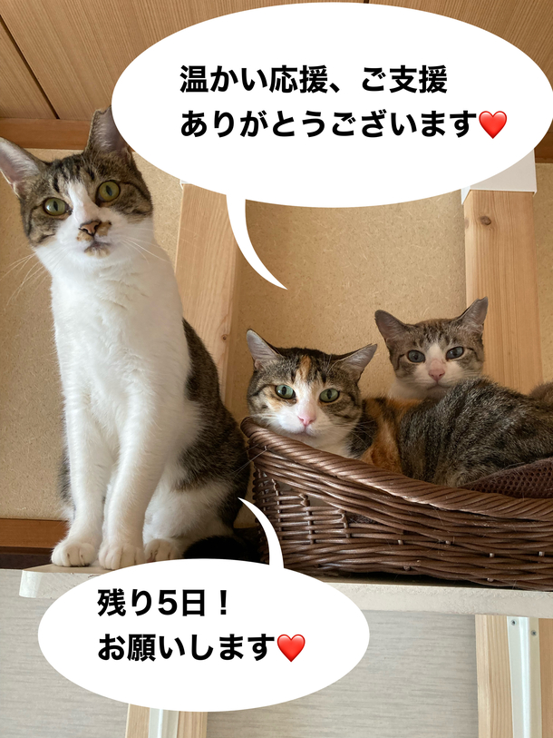 いつもねこけんさんのブログを読んでいて、今回の支援に賛同させて頂きました。