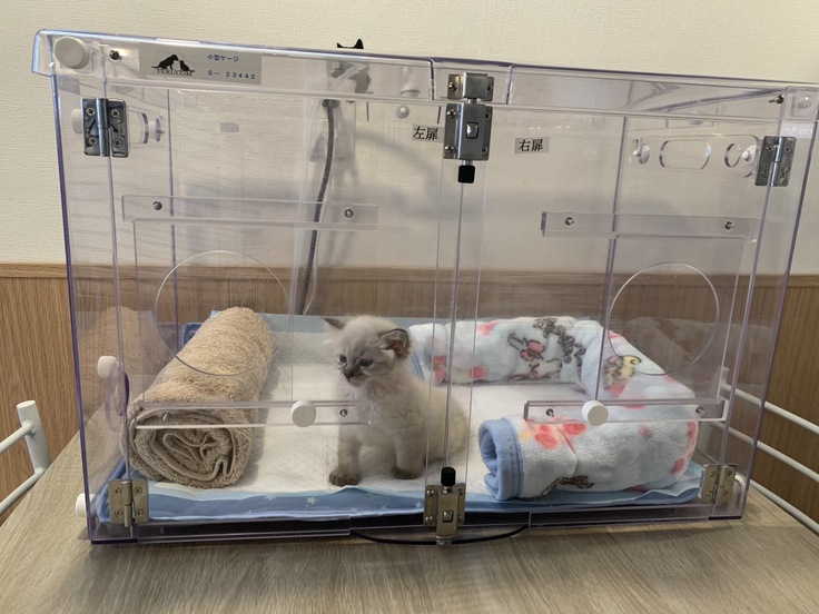獣医師からの勧めで、即日酸素室を借りに走り、肺炎の治療のため投薬を開始。