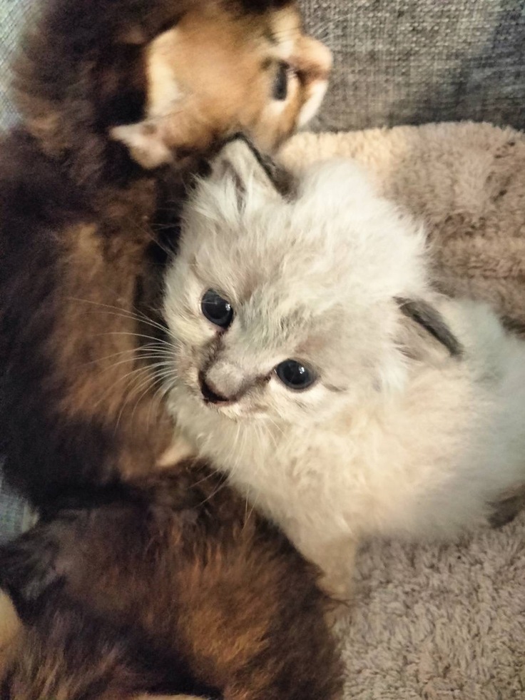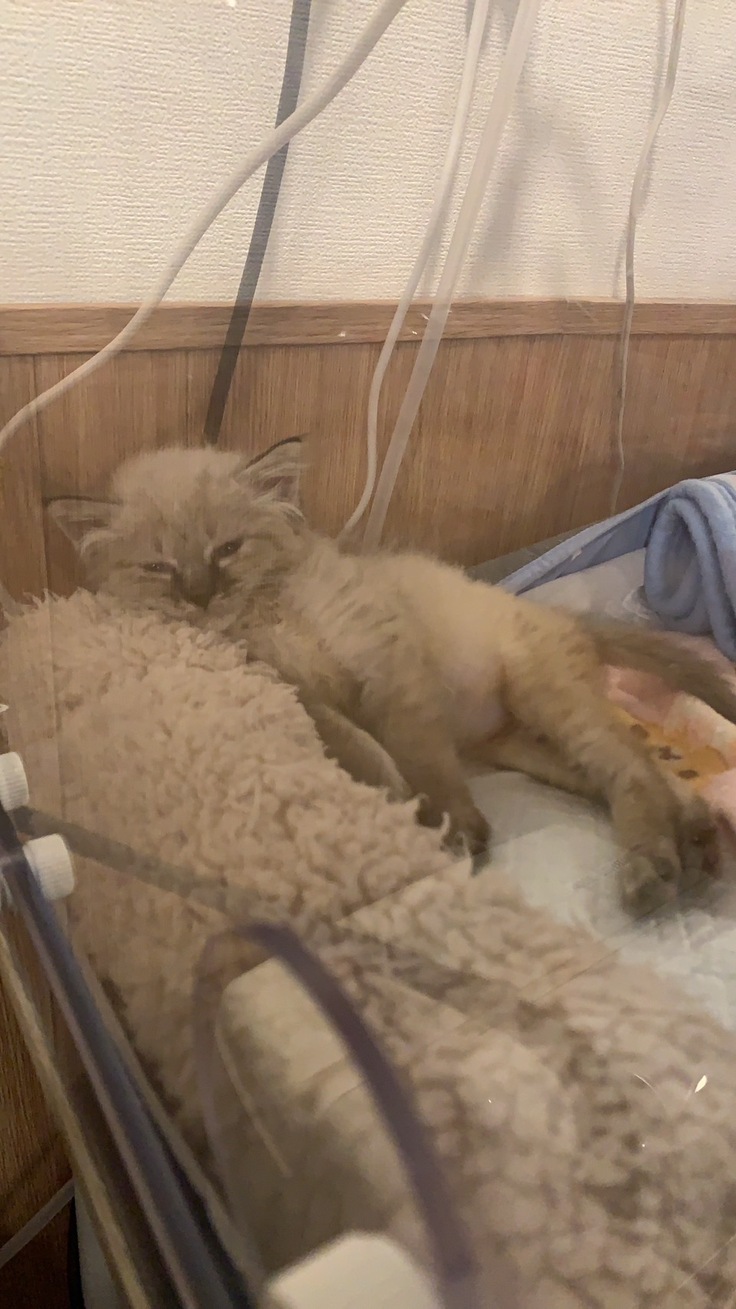 シャムミックスの『ひまる』が5匹の中で最も小さく、ミルクの飲みが悪い日々が続いていました。そして息苦しそう…