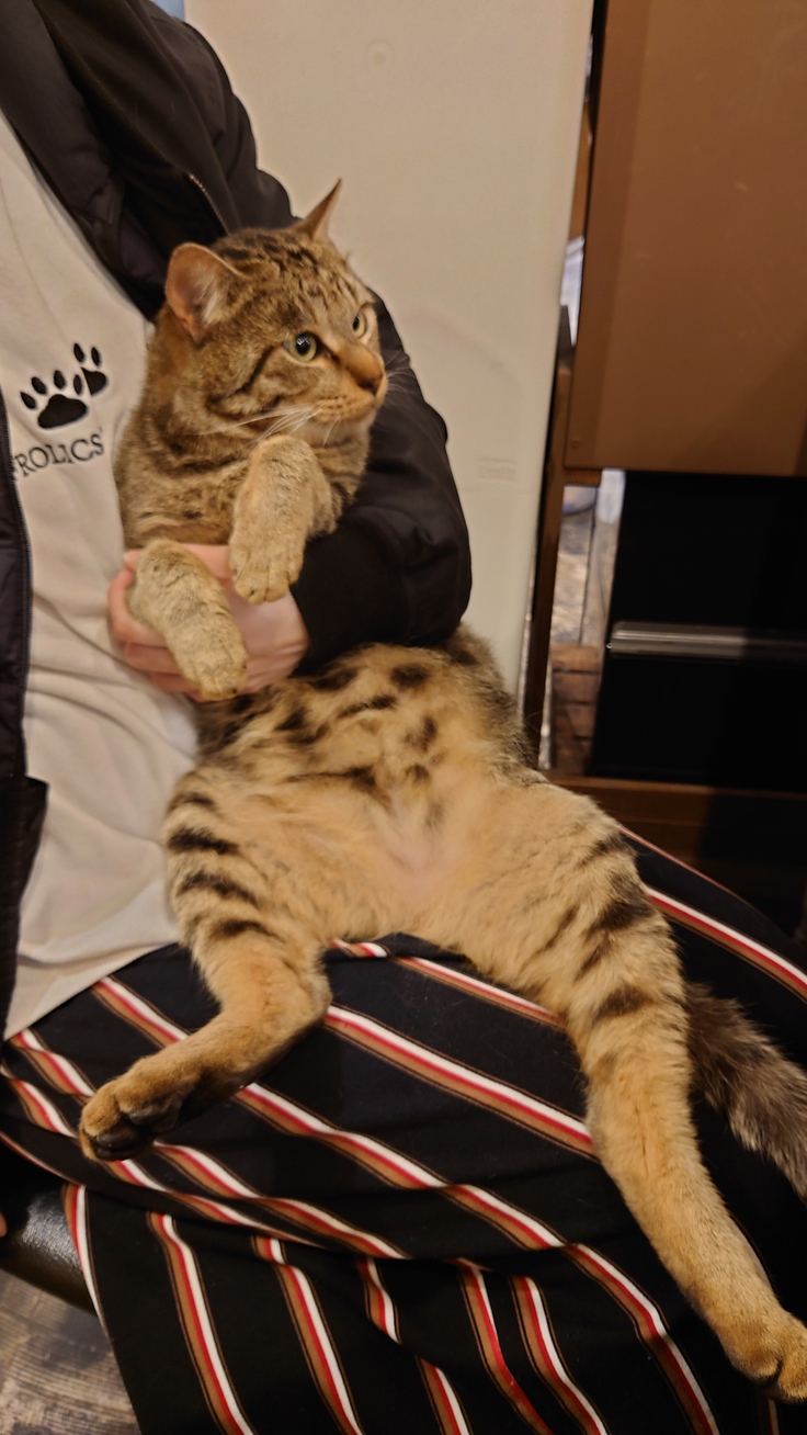 と、アメショが混じってそうな大きめキジトラの動画を見せてくれました。