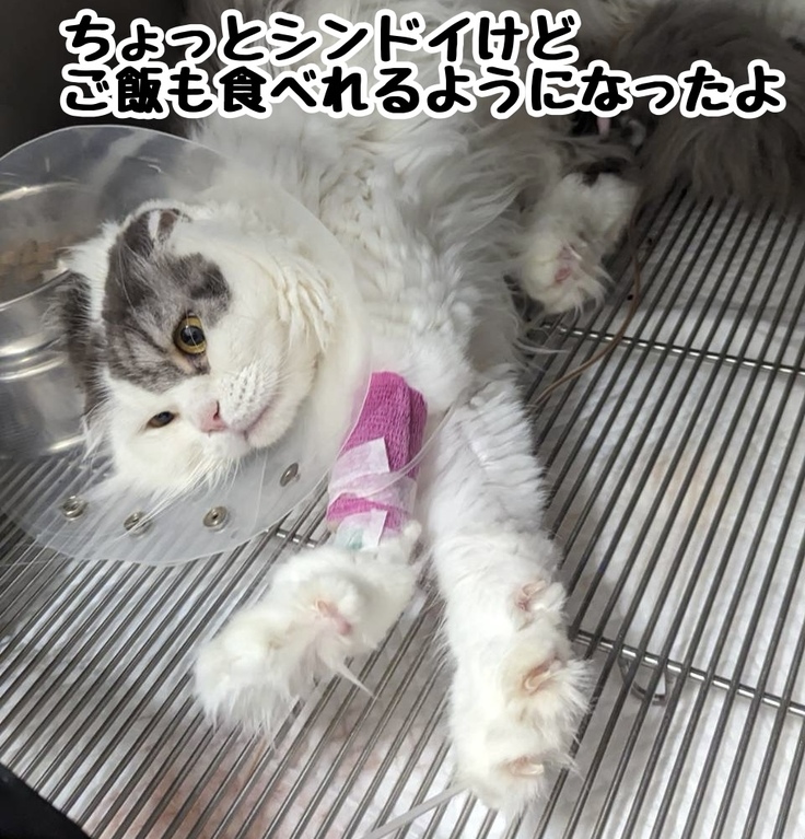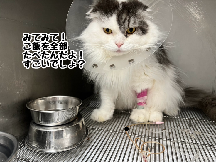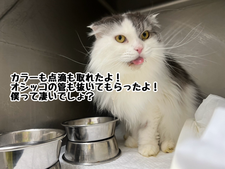 点滴やカラーも外れ、順調に回復している様子でした。先生や看護師さんが懸命な治療をしてくれました。本当に頭が上がりません。