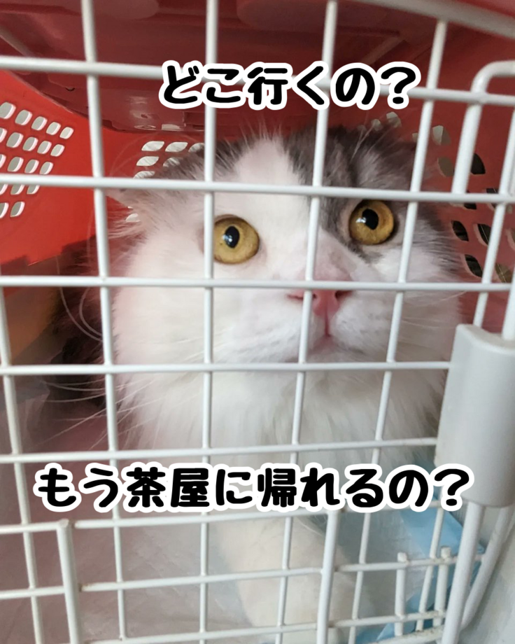 無事退院。車の中では「出せー!」と元気に鳴き、茶屋に戻ってきました。まだ膀胱炎の症状があるため抗生剤を服用、膀胱の壁が通常2mmのところ、じゃじゃは5mm以上に腫れており、再発に注意が必要とのことでした。
