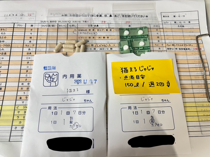 膀胱の腫れは完全にひき、抗生剤も終了しました。ただしストルバイト結晶が残っており、再発しやすい体質と診断されました。今後は療法食「ロイヤルカナン ユリナリーS/O」と、週2回の皮下点滴でケアを続けることになりました。