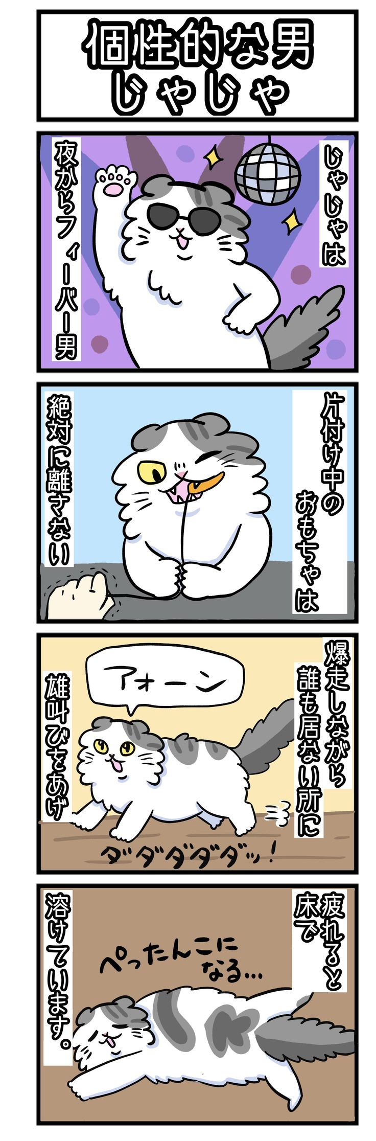 じゃじゃはとても面白い男の子です。最後に、そんな様子を4コマ漫画にしましたので、お楽しみください。