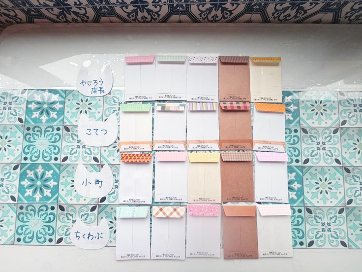 猫スタッフたちのイラストを猫まるのスタッフが書いています。