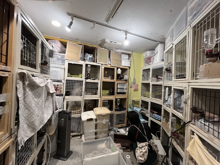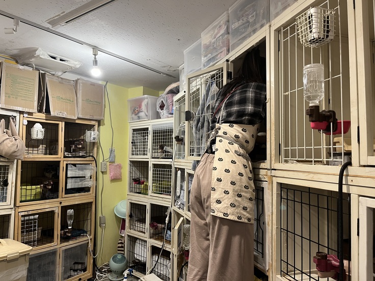 バックヤードには大体猫達のお部屋が30室位あります。