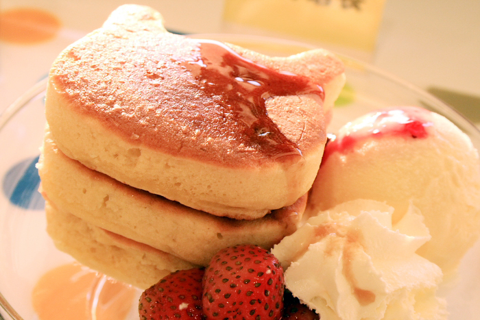 ミニキャットタワーは猫型のパンケーキが3段になっています。