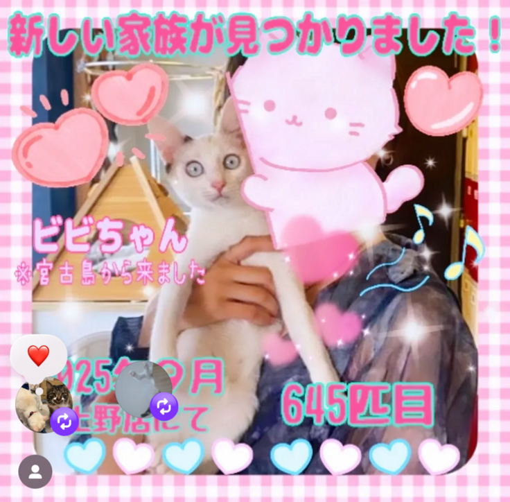 (隔離終了後、沖縄猫まる茶屋にて預かり8月に上野に引越しをしてきています)