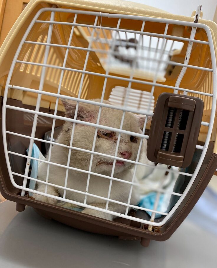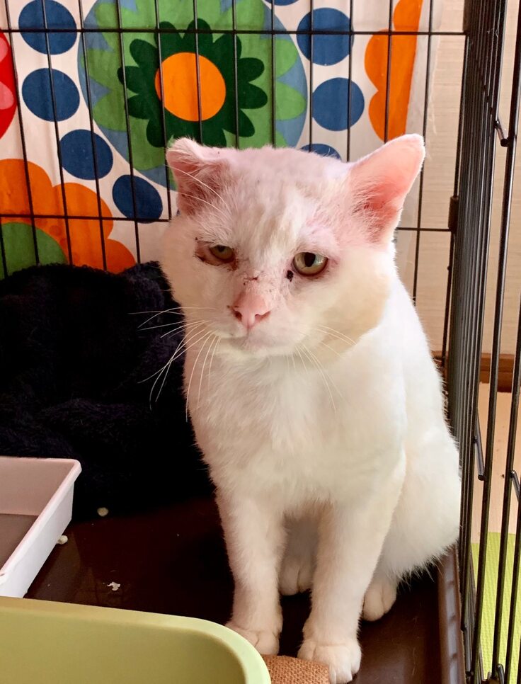 2020年10月、3か月の捕獲活動を経て保護された白猫、大吾さま。