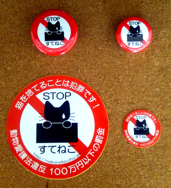 STOP捨て猫ステッカー&缶バッチ 大・小セット