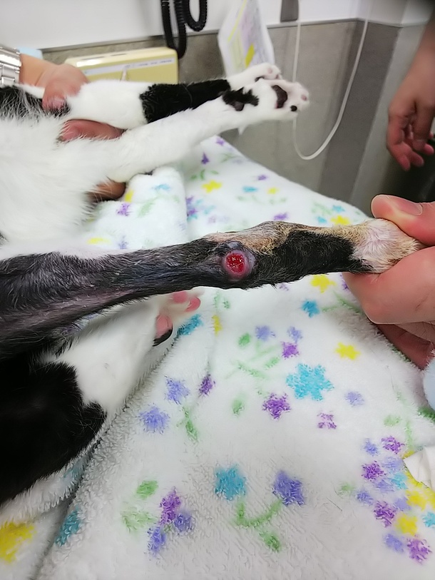 なかなか脚をついて歩くことが出来ず、脚を触ると嫌がってもいた。