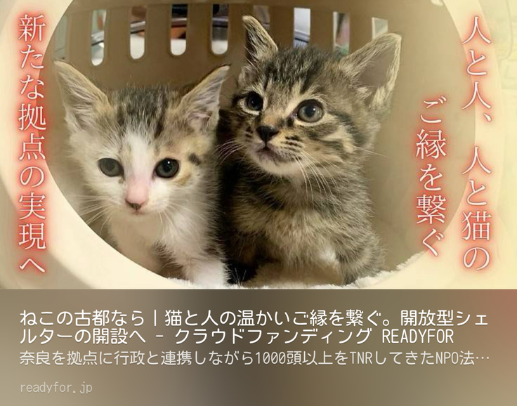 先日ご案内した「ねこの古都なら|猫と人の温かいご縁を繋ぐ。開放型シェルターの開設へ」