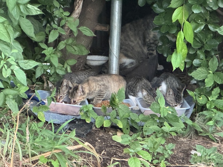 成猫6匹。メス4匹とおす2匹はTNR+Care(医療・見守り)
