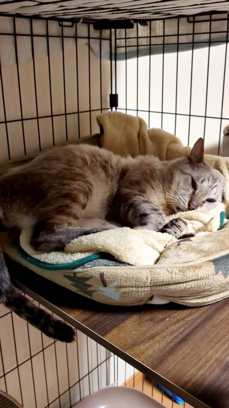以前SNSで投稿したシャム系のケガ猫、のんちゃんの続報です。