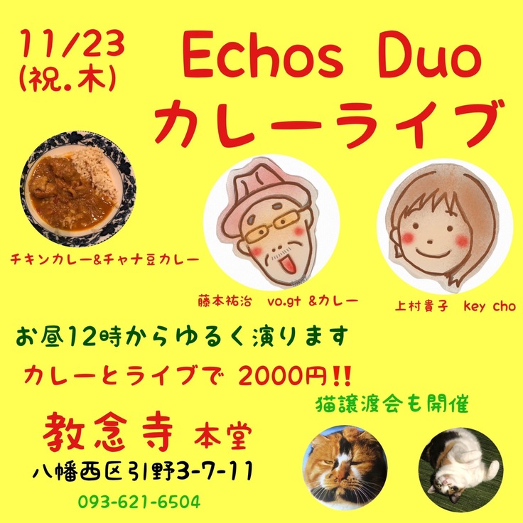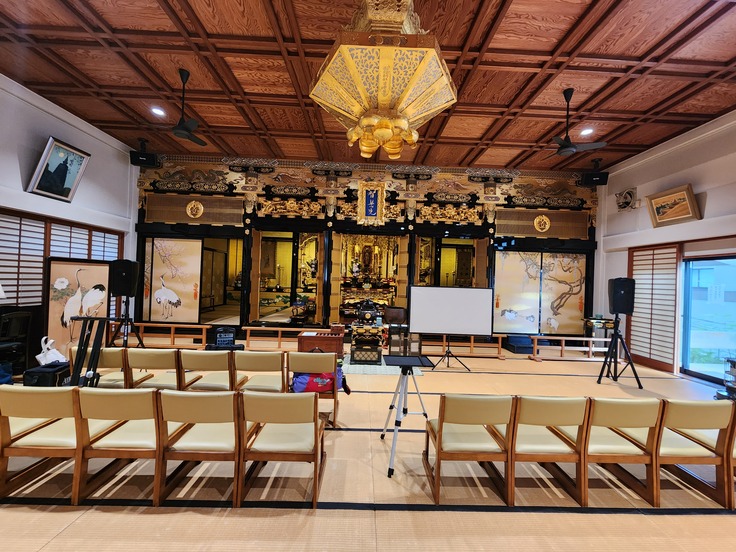昨日はムツゴロウバンドEchos(エコーズ)さんによる「動物や人の愛がテーマ」のトーク&ライブが開催されました。なんと本堂で( *´艸`)