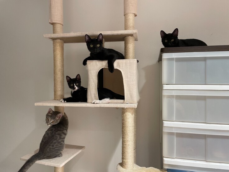 猫がご飯も十分食べられず、猫たちのトイレもない現場から、まだ全員助けられていない…などの多頭飼育崩壊の話や、野良猫がお腹が空きすぎてゴミや砂など食べている話、冬の寒さに耐えているお話を聞き、こんな状況の猫たちがたくさんいるんだと衝撃を受け…そのまま4匹のかわいい猫たちを家族にすることに決めました♡笑
