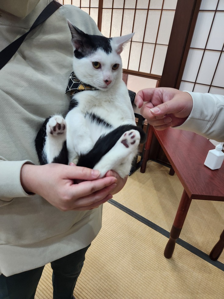 譲渡会デビューしたばかりで、まだ慣れずにカチカチに固まる猫は、なるべくそっと…
