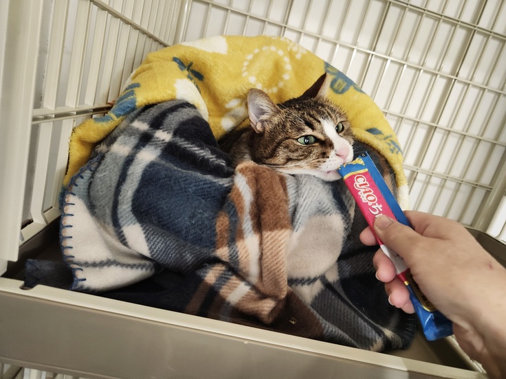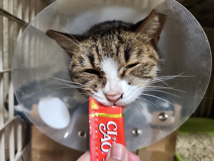 幸い足は骨折しておらず経過も順調で、日に日に元気を取り戻していきました。本当に嬉しいことですね。ちゅ~るも大好きなんです🎵