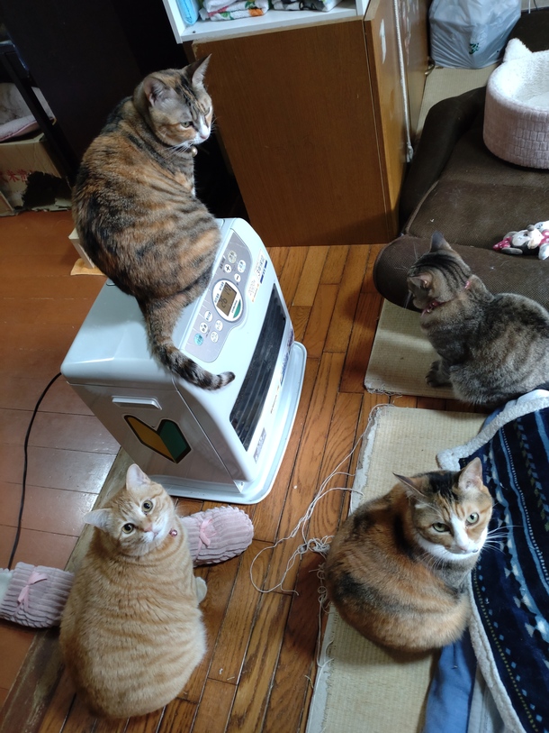 ヒーターの上に、しまちゃん💕
