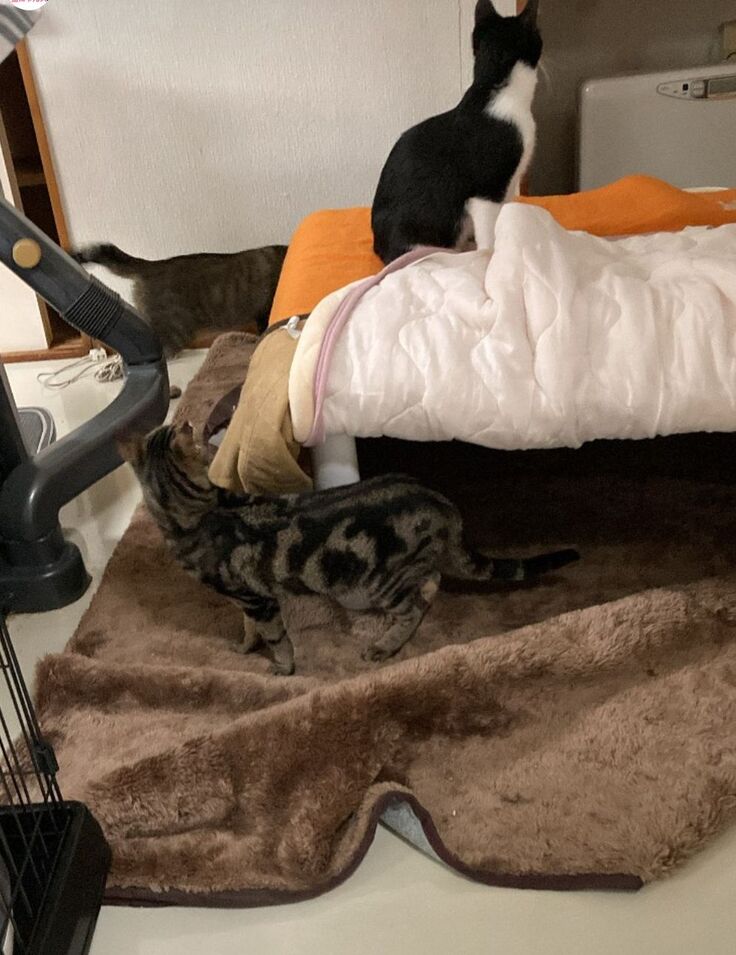 人馴れできていない子達も数匹いたので、お世話担当メンバーたちでどうやってキャリーバッグに入れるか。