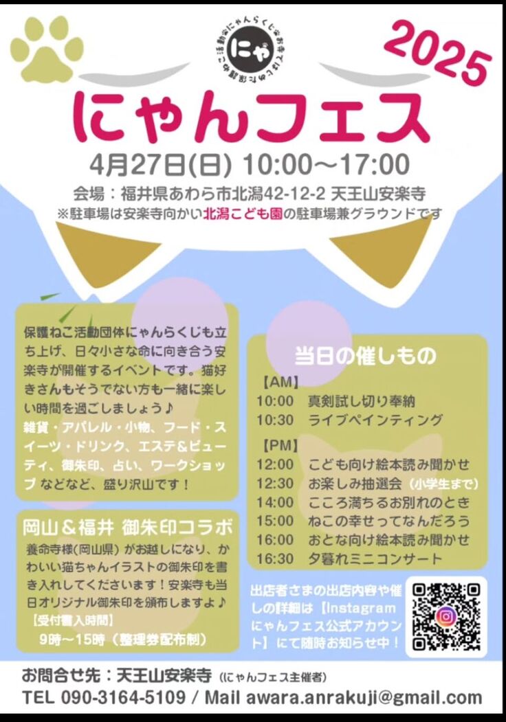 27日はリターン品ご用意下さいました安楽寺さんのにゃんフェス開催