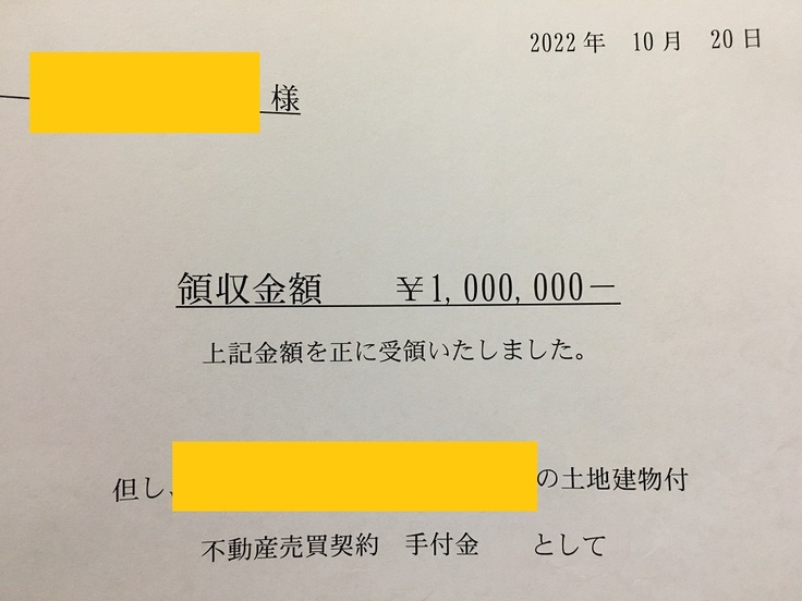 2022年10月20日 手付金を支払い、仮売買契約を締結しました。