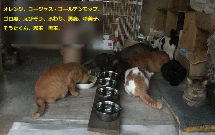 (廃墟に置いておくと何者かが勝手に触ることがあったため、今は、その都度、自宅から物資を運んでいます。ここは電気水道もあるので、毛布などのお洗濯も可能になりお世話が行き届くようになります)