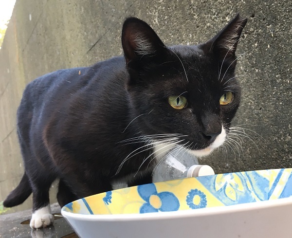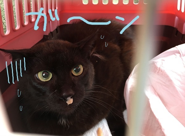 お迎えは、黒猫5匹家族のエサやりさんが引き受けてくれました。