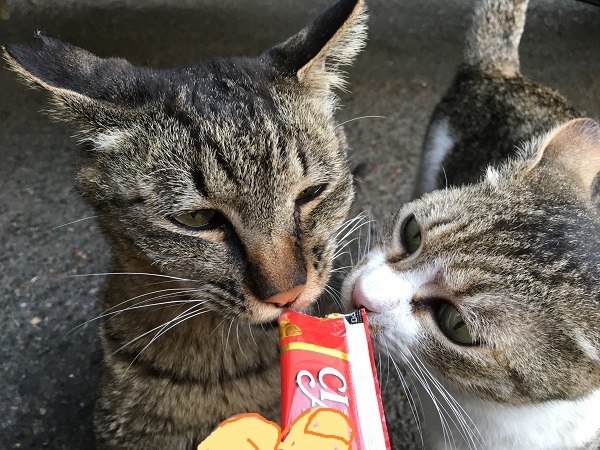 おなかいっぱい食べた元気な猫たちから、ごちそうさまの御礼メールを送らせていただきます。