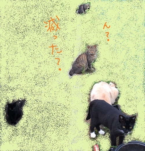黒猫5匹家族のエサ場に戻って、猫パト開始です。
