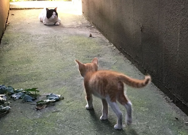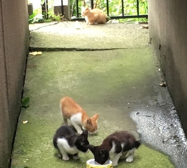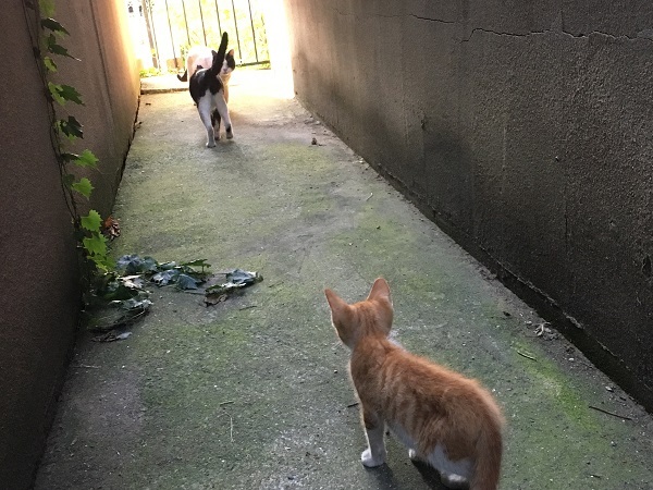 エサ場を挟んだ、事業所と事業所の間の通路で、子猫をみつけて安堵しました。
