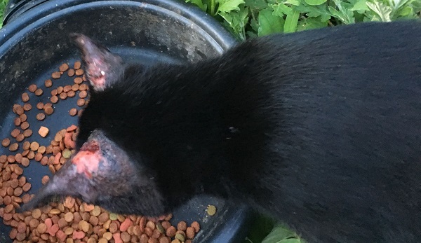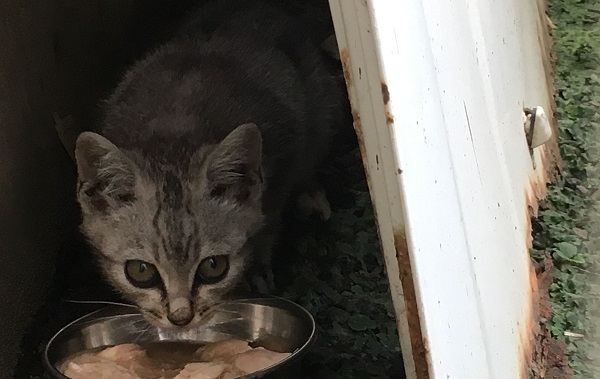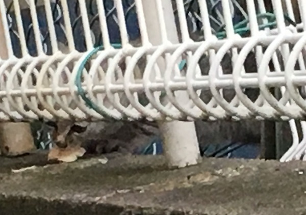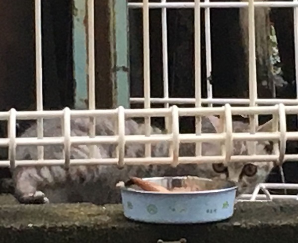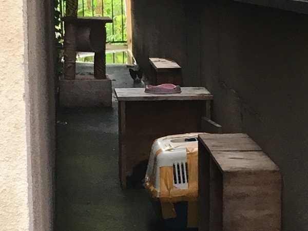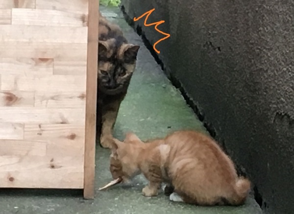 先日、壁の中に子猫がいた事業所のエサ場です。なんとこれは・・・