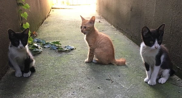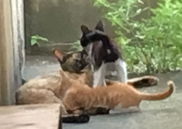 真ん中のキジ白の子は、一匹だけ他の子より大きいので、きょうだいではないのではないかと思われました。