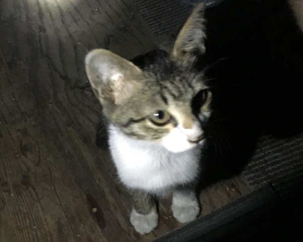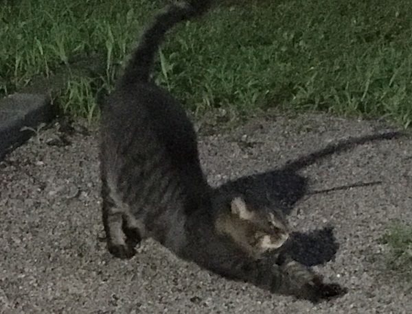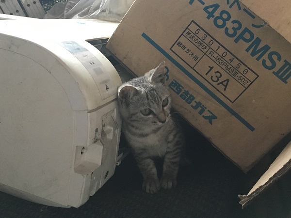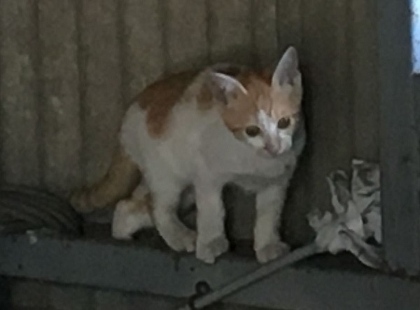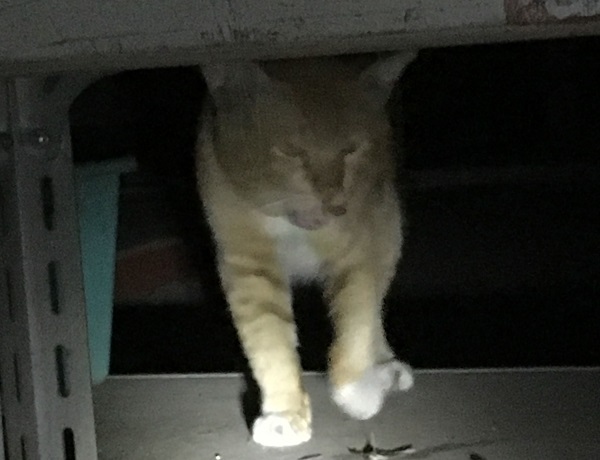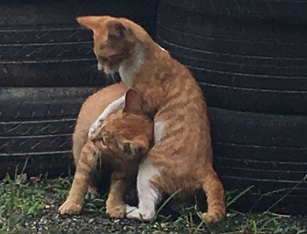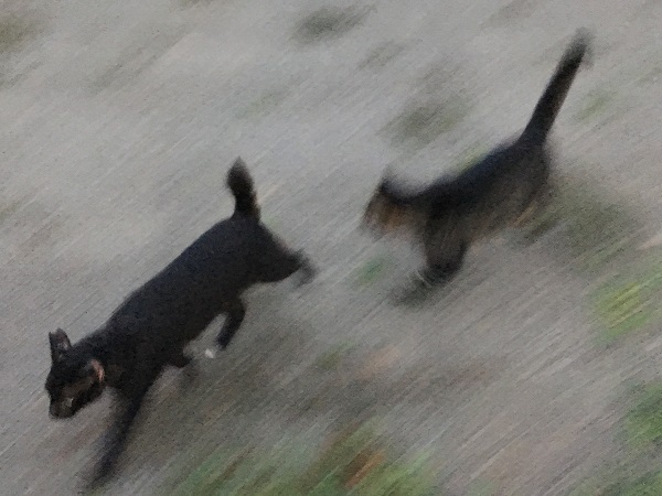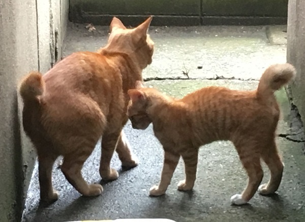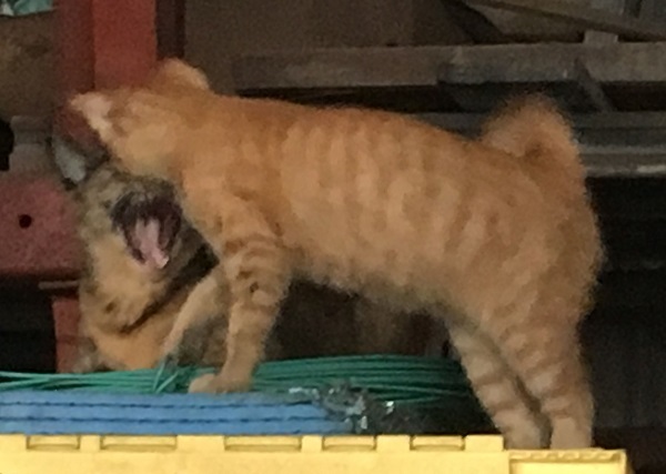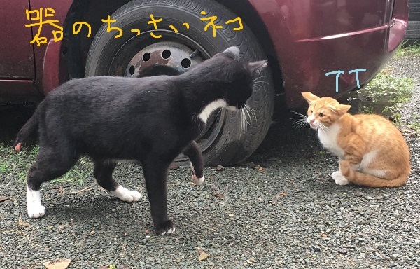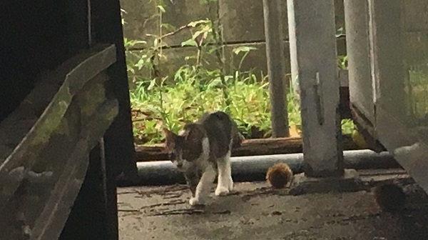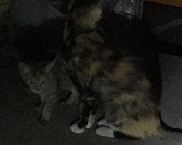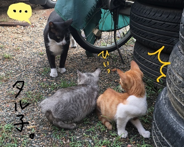 しっぽの切れた月子の息子来た。子猫隠れる。