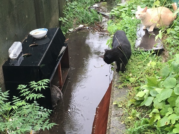 雨の日はゴハンを濡らさないで置ける場所がないので、ここは心配です。
