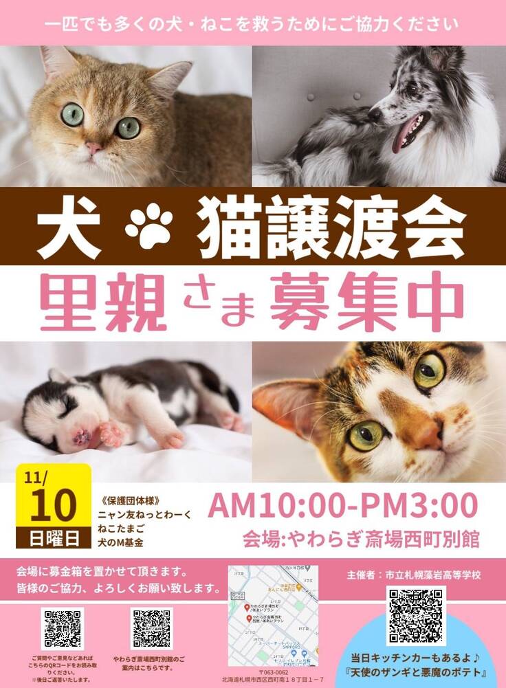 市立札幌藻岩高等学校の生徒さん達が企画主催の譲渡会です❗