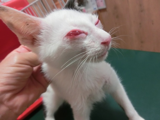首を咬まれ、瀕死の状態で倒れていた仔猫を見つけたボランティアさんが病院に運んでくださいました。